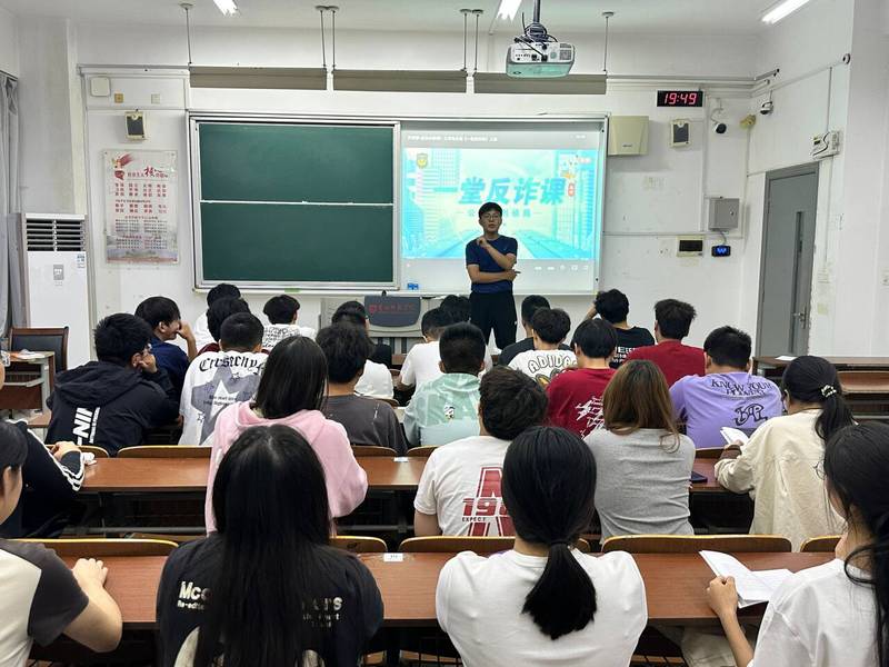 在活动开展过程中,学院精心策划并实施了多项举措。首先,发放防范电信网络诈骗宣传手册,该手册内容详实、图文并茂,涵盖了电信网络诈骗的常见类型、作案手法以及防范技巧等重要信息,为新生提供了系统全面的学习资料,帮助他们初步建立起防范意识。其次,学院组织各班新生集中观看《反诈第一课》。这部教育直播课系统展示了当前电信网络诈骗的新型手段与发展趋势,详细解析了常见诈骗类型的作案手法与防范策略。课程通过真实案例还原,生动揭示了诈骗分子的常用话术,帮助新生直观理解诈骗全过程,使他们在视觉与听觉的双重冲击下,深刻认识到电信网络诈骗的危害性,进一步增强了防范意识。此外,学院第一时间召开反电信网络诈骗专题班会,各班辅导员结合实际案例,深入讲解电信网络诈骗的常见套路,引导学生分享自己的感悟与体会,营造了浓厚的学习氛围,使防范电信网络诈骗的理念深入人心。