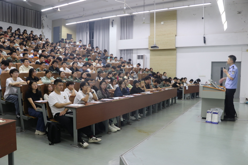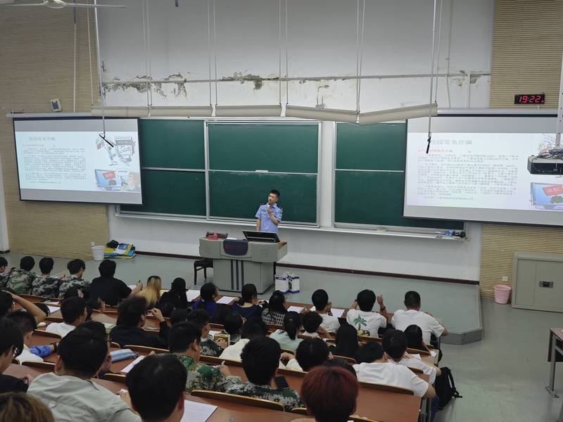 为进一步增强新生识诈、防诈、反诈意识,筑牢校园安全防线,9月18日晚,全讯800cc大白菜在公共教学楼C201举办“防范电信网络诈骗”专题讲座。本次讲座特邀盐城经济技术开发区公安分局于利之警官主讲,2025级244名新生全员参与。
