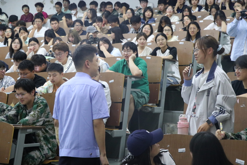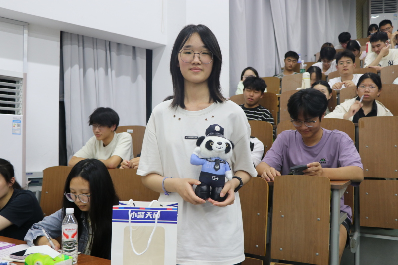 讲座尾声,于警官设置了提问互动,有奖竞答环节。“接到自称公安局,要求转账到‘安全账户’的电话,该怎么办?”问题刚抛出,多名学生同时举手抢答:“挂断并立即拨打110或96110核实!”一名女生获赠警察小熊玩偶,现场气氛热烈。新生纷纷表示,此次讲座案例鲜活、讲解透彻,让自己对各类电信诈骗有了更全面的认知,今后定会提高警惕,守护好个人财产安全。